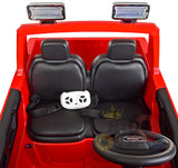 Parental Remote Control Feature: This Ride-on enables two options for driving: using the features inside the car that include the steering wheel, pedal accelerator as well as the Forward/Reverse controller, or using the parental remote control. This feature allows parents to join the fun and control the speed and direction with the Forward/Reverse/Left/Right options.Our parental remote controls have a special emergency stop button feature that allows parents to take over the ride on and stop it completely if the child is getting close to potential danger.
