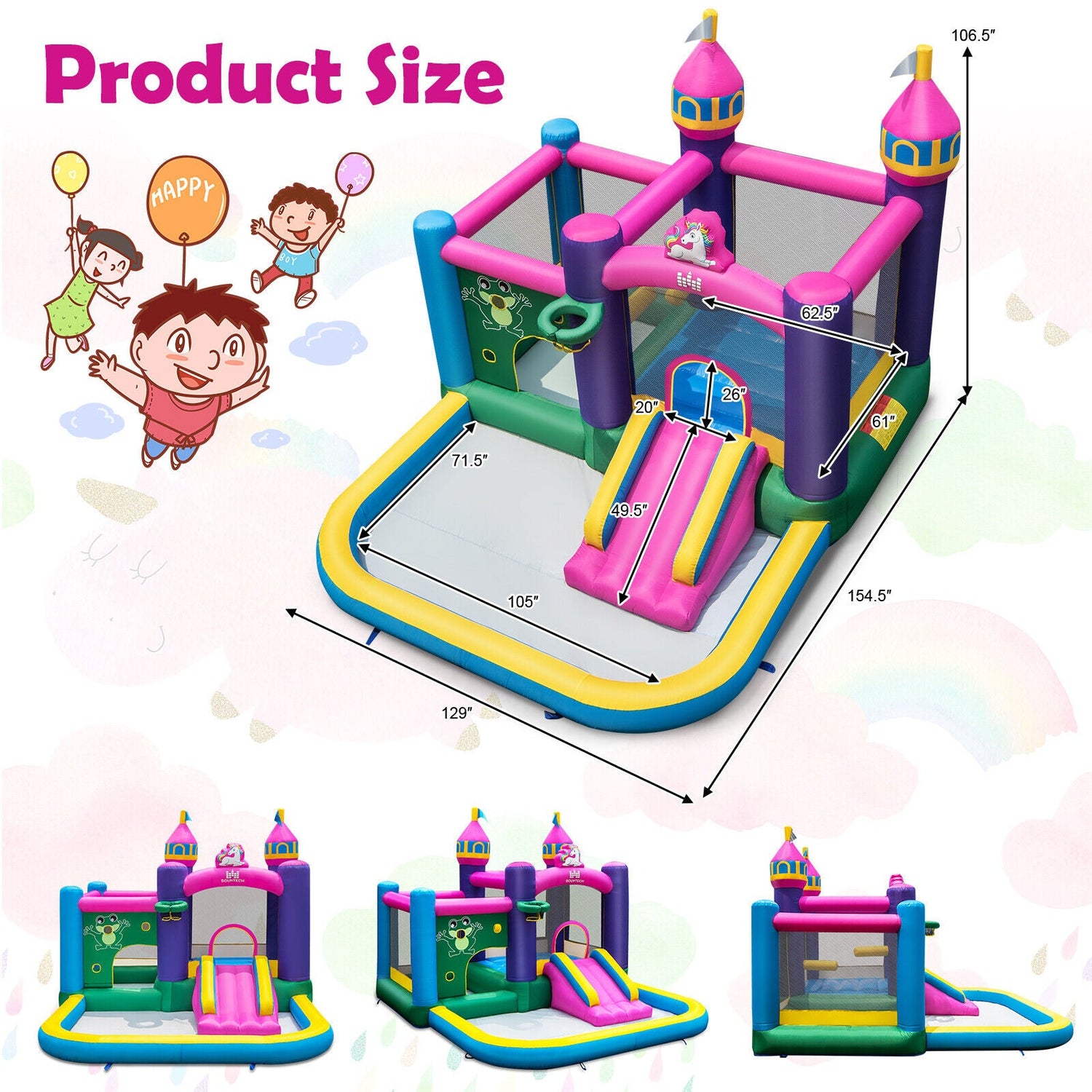 6-in-1 Kids Inflatable Unicorn-themed Bounce House with 735W Blower