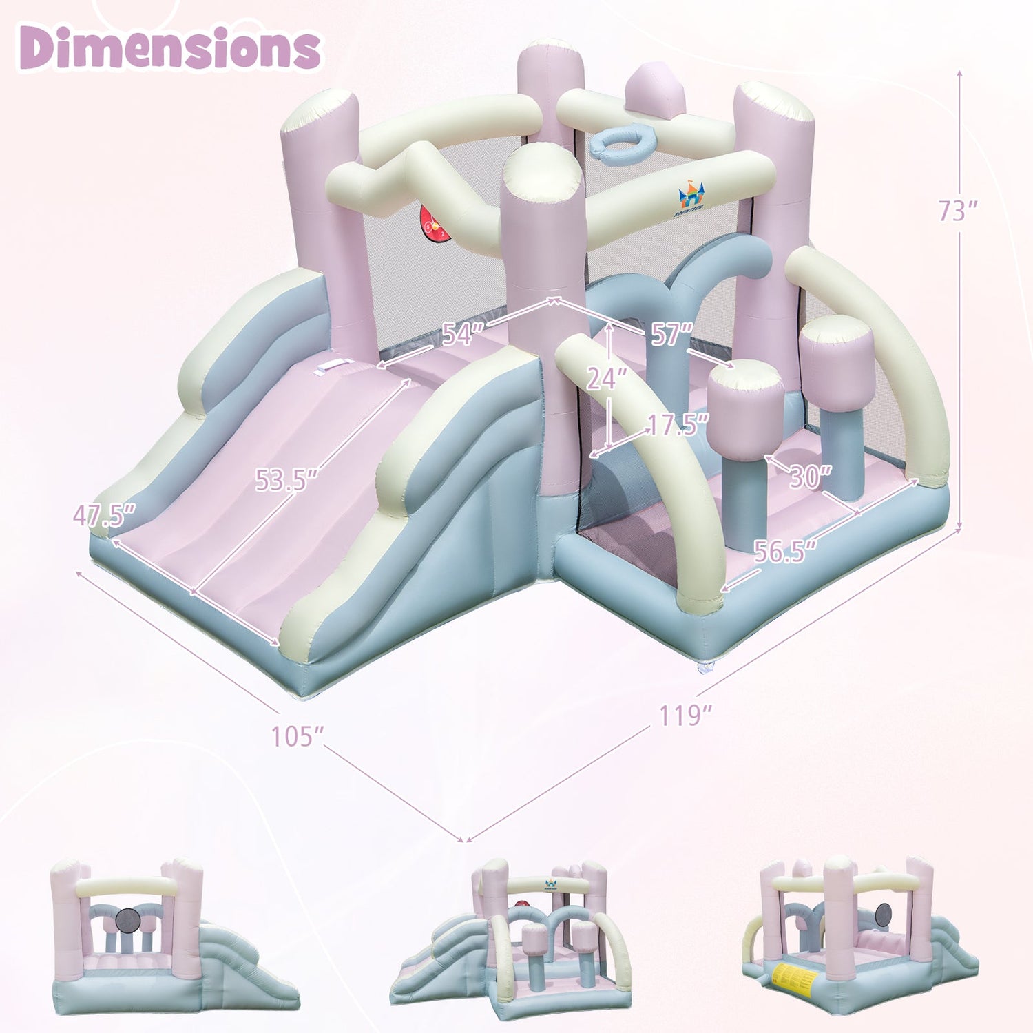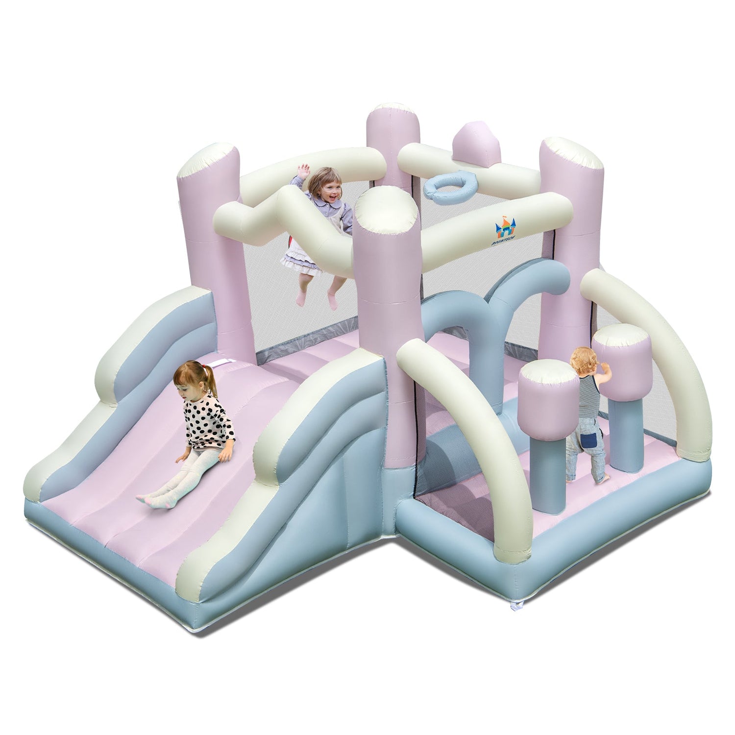 Perfect for birthdays, backyard playdates, and family gatherings, this pastel bounce house delivers safe, active fun in a beautifully designed inflatable play space.