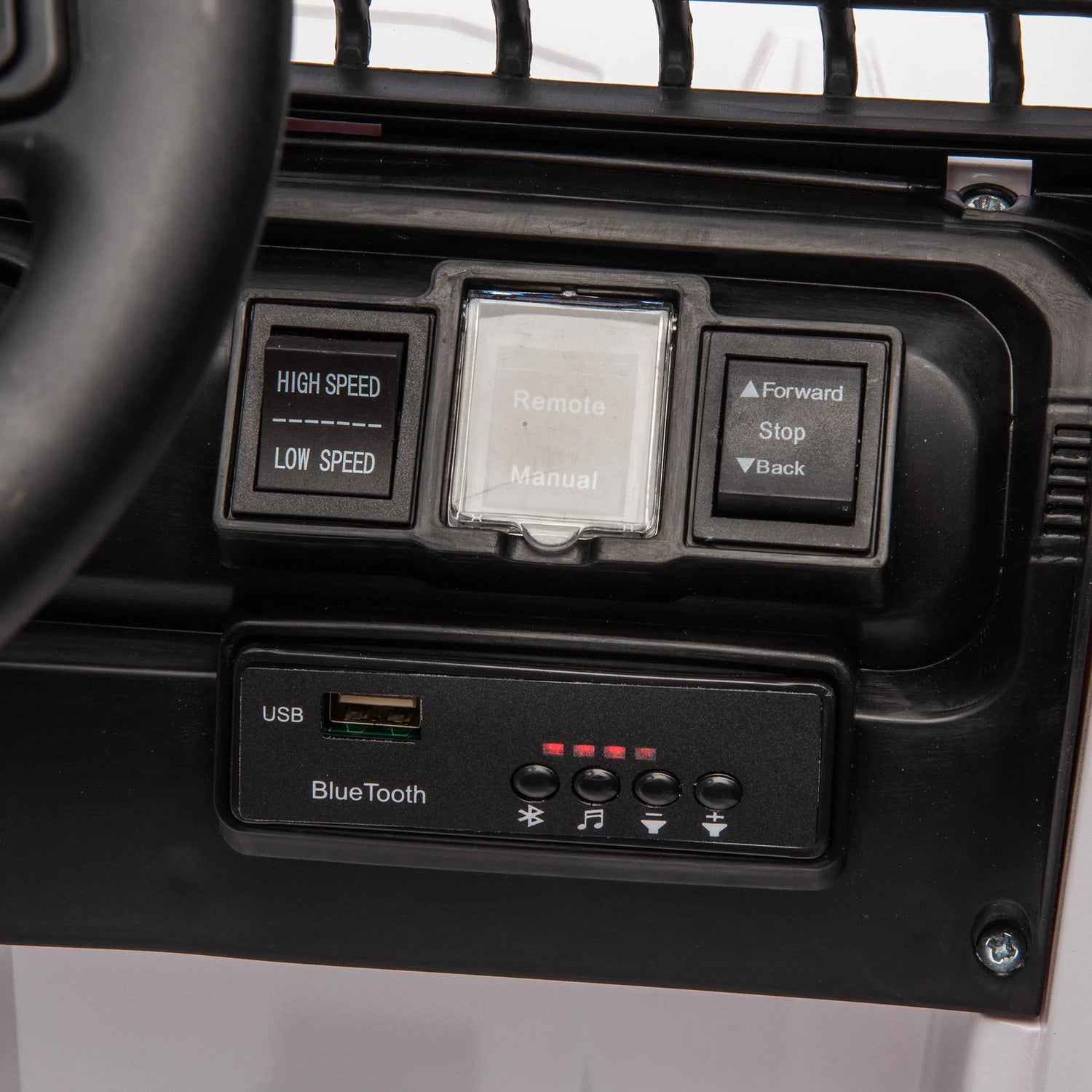 Young drivers can take the wheel using the steering wheel and pedal controls, while parents can step in anytime with the 2.4G remote override for directional control and added safety. Bright LED headlights, realistic engine start sounds, and built-in Bluetooth connectivity bring the driving experience to life, letting kids cruise to their own soundtrack.
