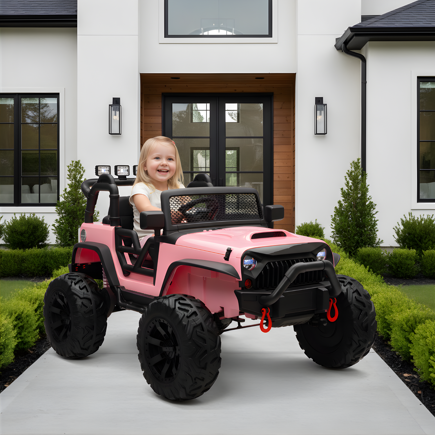 Powered by dual 24V high-performance motors and a 24V battery system, the truck provides smooth, reliable acceleration with speeds ranging from 2–5 mph. Children can drive independently using the steering wheel and foot pedal, while parents retain full control through the included remote with an emergency stop button, allowing instant intervention when needed.