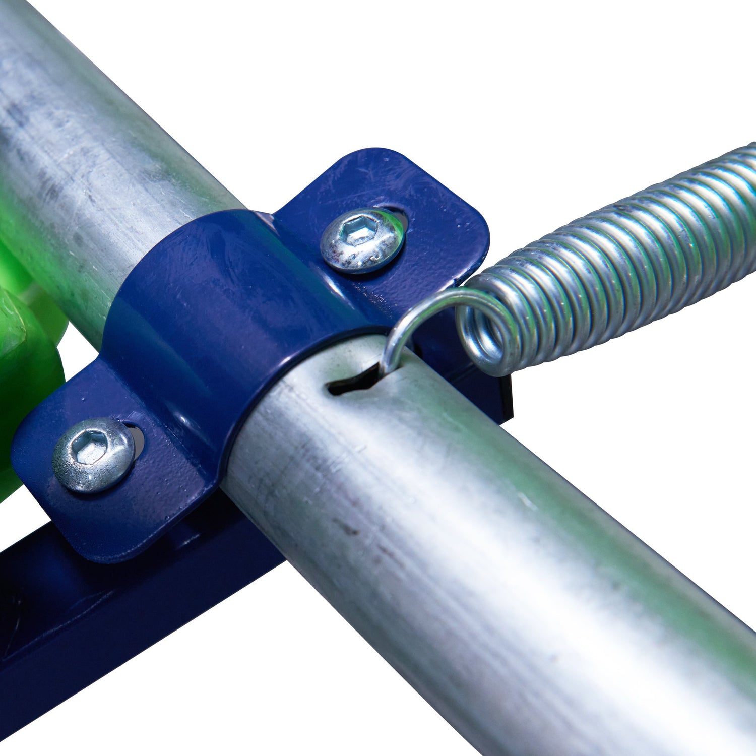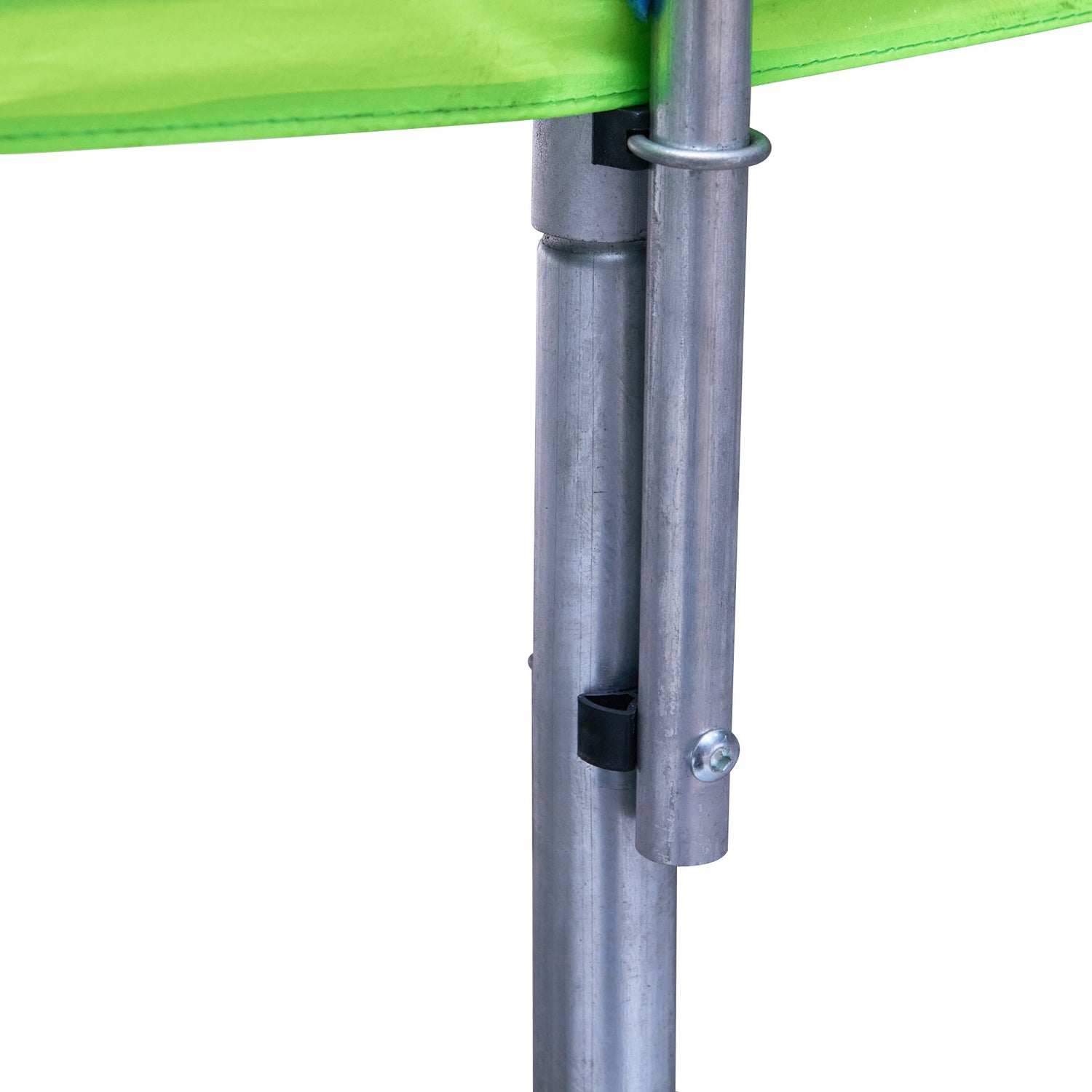 Beyond jumping, this trampoline includes a small detachable football goal, making it perfect for backyard soccer practice. Four ground stakes secure the goal for added stability, allowing kids to train and enjoy friendly matches right at home. A triangle net around the backboard helps prevent balls from flying off during play.